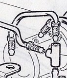 Tuyau 4,5 mm en cuivre, depuis Té AR jusqu'au flexible AR gauche.