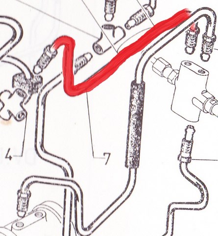 Tuyau du raccord 4 voies a la valve de priorité