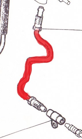 Tuyau de la valve de priorité au raccord 2 voies vers l'arrière